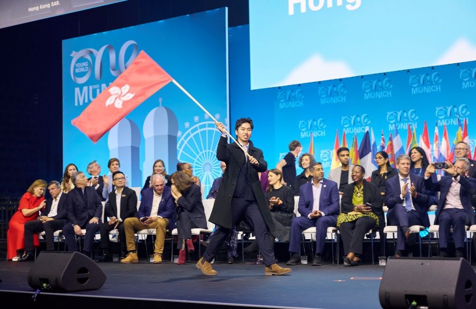 世界青年领袖峰会 (One Young World) 年度峰会开幕,代表香港特区的青年旗手进场。