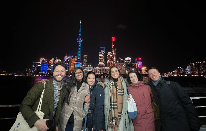 The students enjoy a night cruise on the Huangpu River in Shanghai.
