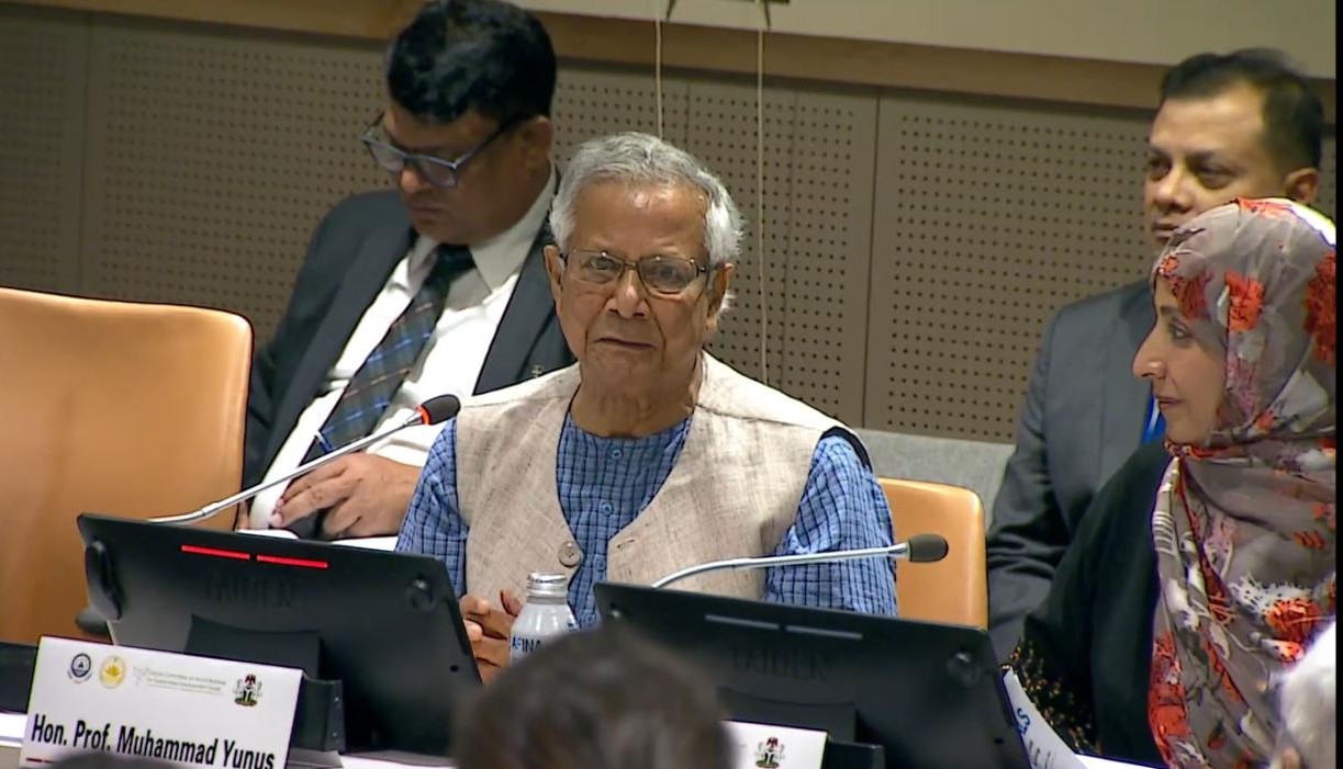 Professor Muhammad Yunus, Chief Adviser of Bangladesh and 2006 Nobel Peace Laureate, speaks at the event.