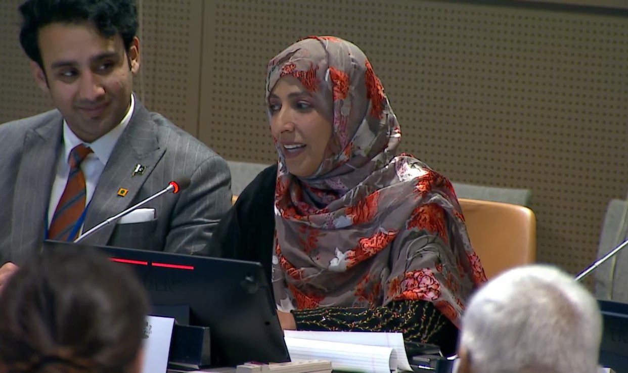Dr. Tawakkol Abdel-Salam Khalid Karman, Nobel Peace Prize Laureate, Yemeni journalist, and human rights activist, speaks at the event.